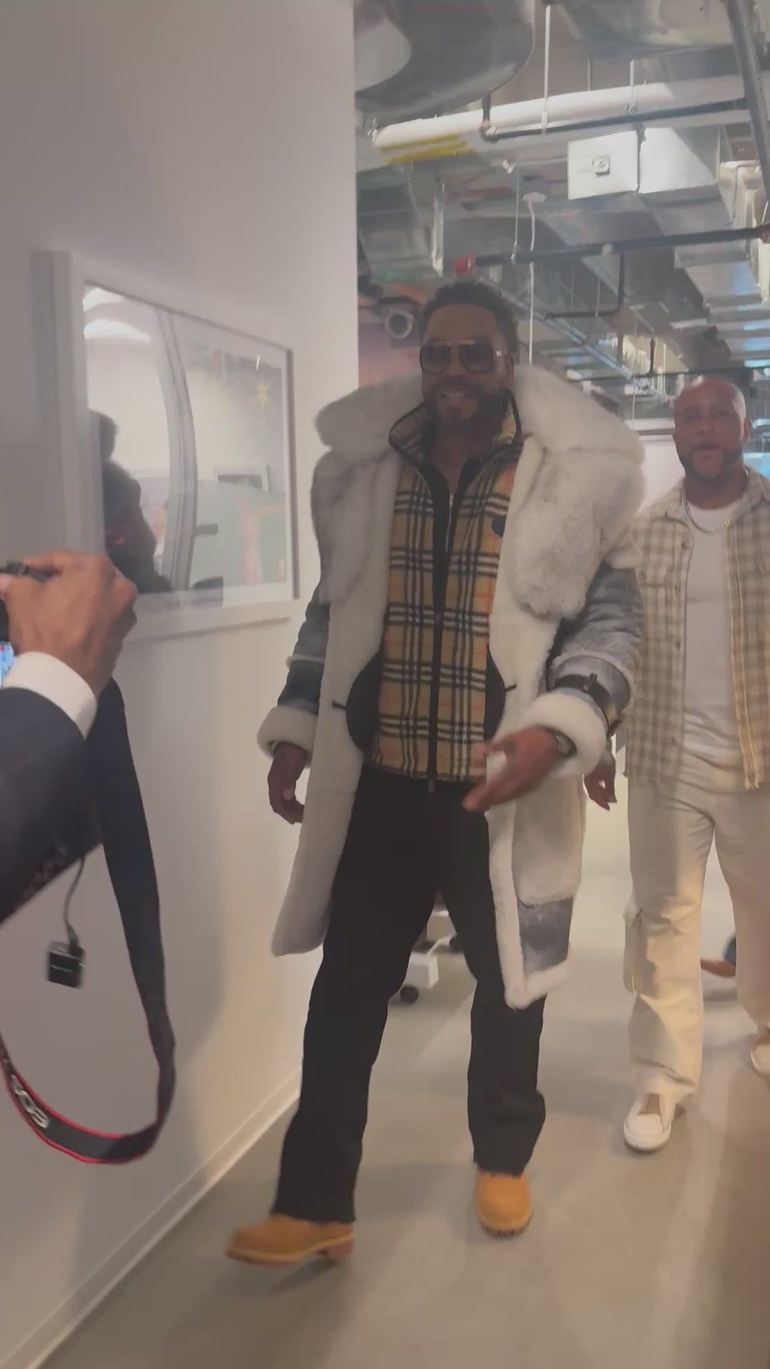 - Oversized fox fur collar